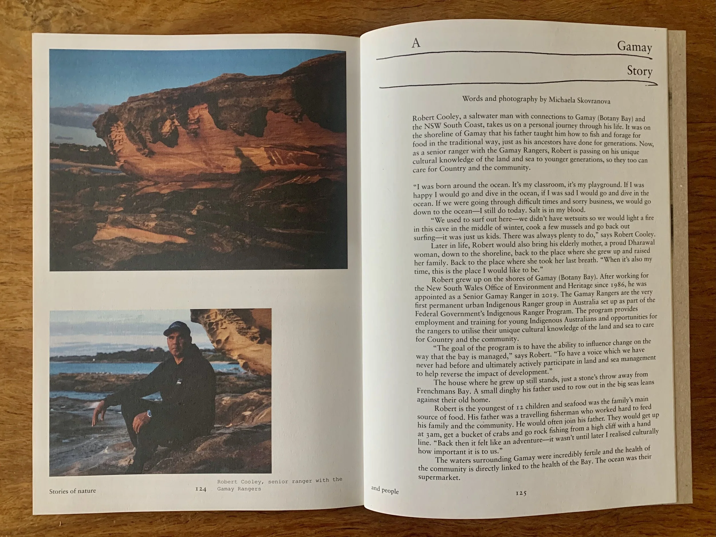 Robert Cooley, a saltwater man with connections to Gamay (Botany Bay) and the NSW South Coast, takes us on a personal journey through his life. It was on the shoreline of Gamay that his father taught him how to fish and forage for food in the traditional way, just as his ancestors have done for generations. Now, as a senior ranger with the Gamay Rangers, Robert is passing on his unique cultural knowledge of the land and sea to younger generations, so they too can care for Country and the community.
